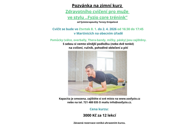 Chcete zlepšit svoji fyzickou kondici, protáhnout všechny svaly v těle a být fit? Využijte jedinečnou možnost a přihlaste se do některého z kurzů…