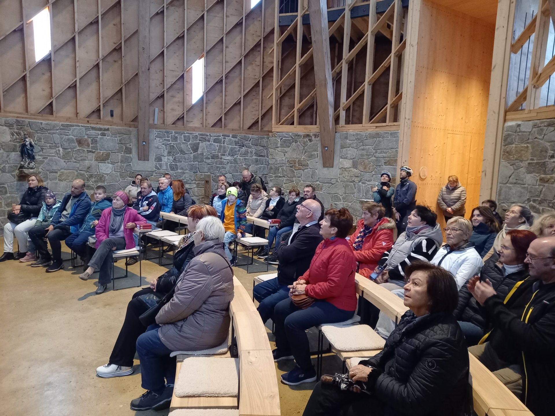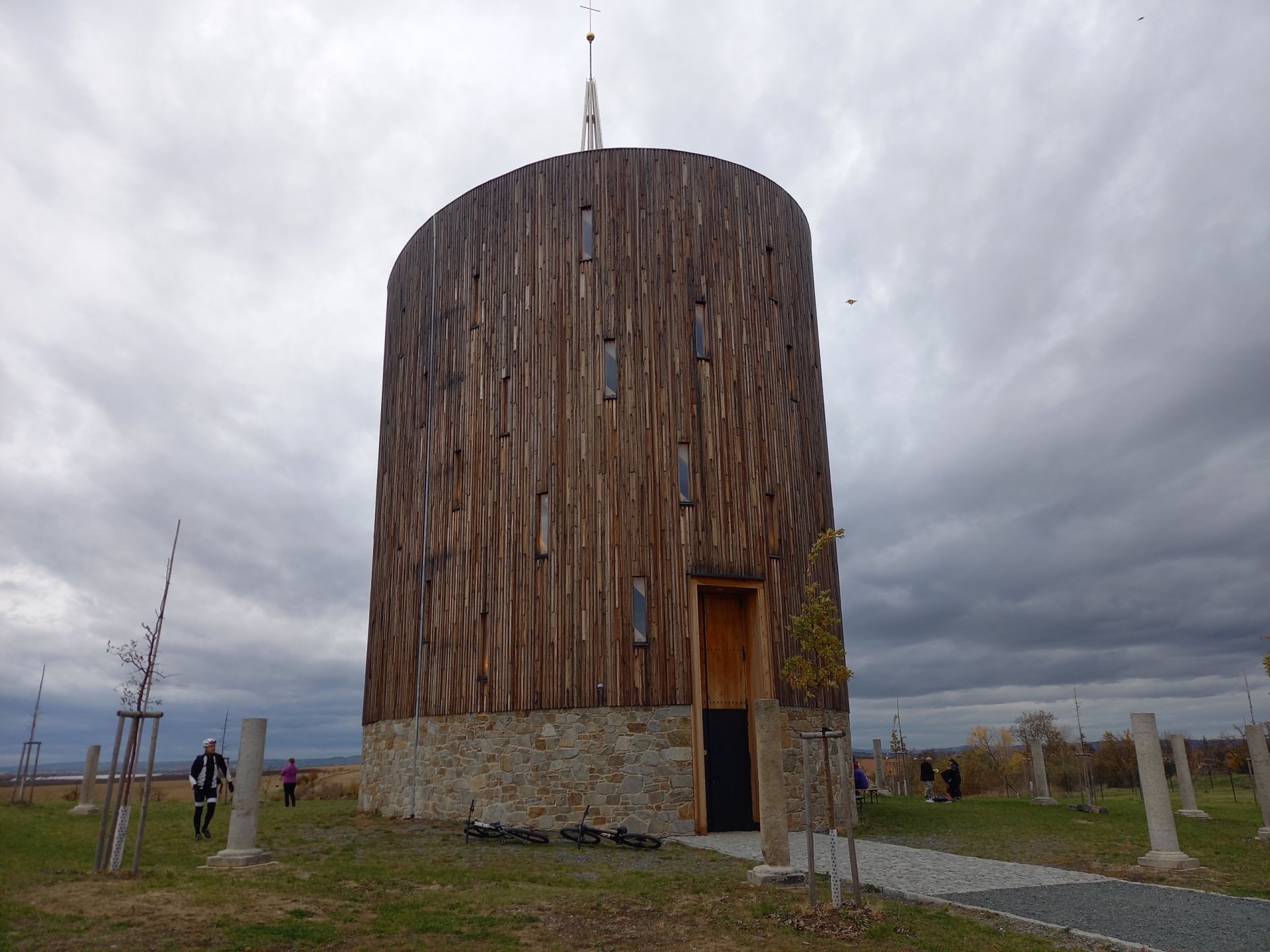 Od stavby, která vznikla, téměř před 100 lety jsme se přesunuli do Nesvačilky, kde postupně stále vzniká stavba nová. Navštívili jsme Kapli Panny Marie Bolestné, která stojí na návrší při jižním okraji obce. Je to válcová dřevostavba s kamenným soklem, stavebním materiálem je žula a jedlové a akátové dřevo. Výška kaple činí 25 m a po vnitřním obvodu kaple se tyčí 15 jedlových trámů uspořádaných do jehlanu a spojujících se v kruhu, tvořícím otvor ve střeše. Jedná se o symbolické vyjádření Sedmera bolestí Mariiných. Tato kaple je výjimečná nejen svým vzhledem, ale především tím, že byla dokončena v roce 2024, a to v obci, která má 340 obyvatel. V roce 2025 získala kaple ocenění Grand Prix architektů - Národní cenu za architekturu.