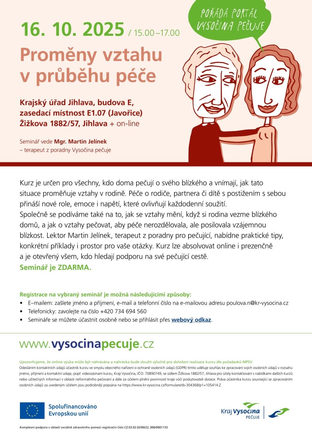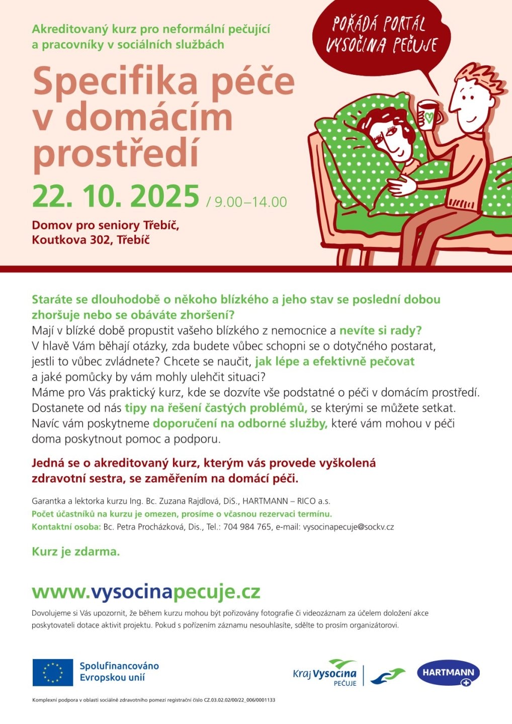 V rámci evropského projektu „Komplexní podpora v oblasti sociálně zdravotního pomezí“ realizuje Kraj Vysočina v měsíci říjnu další aktivity pro pečující.