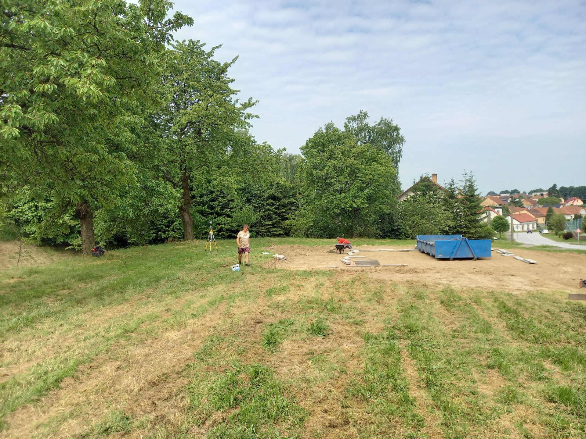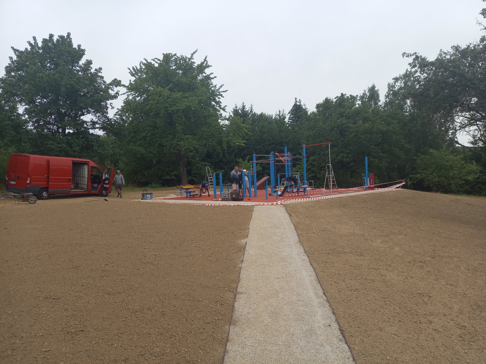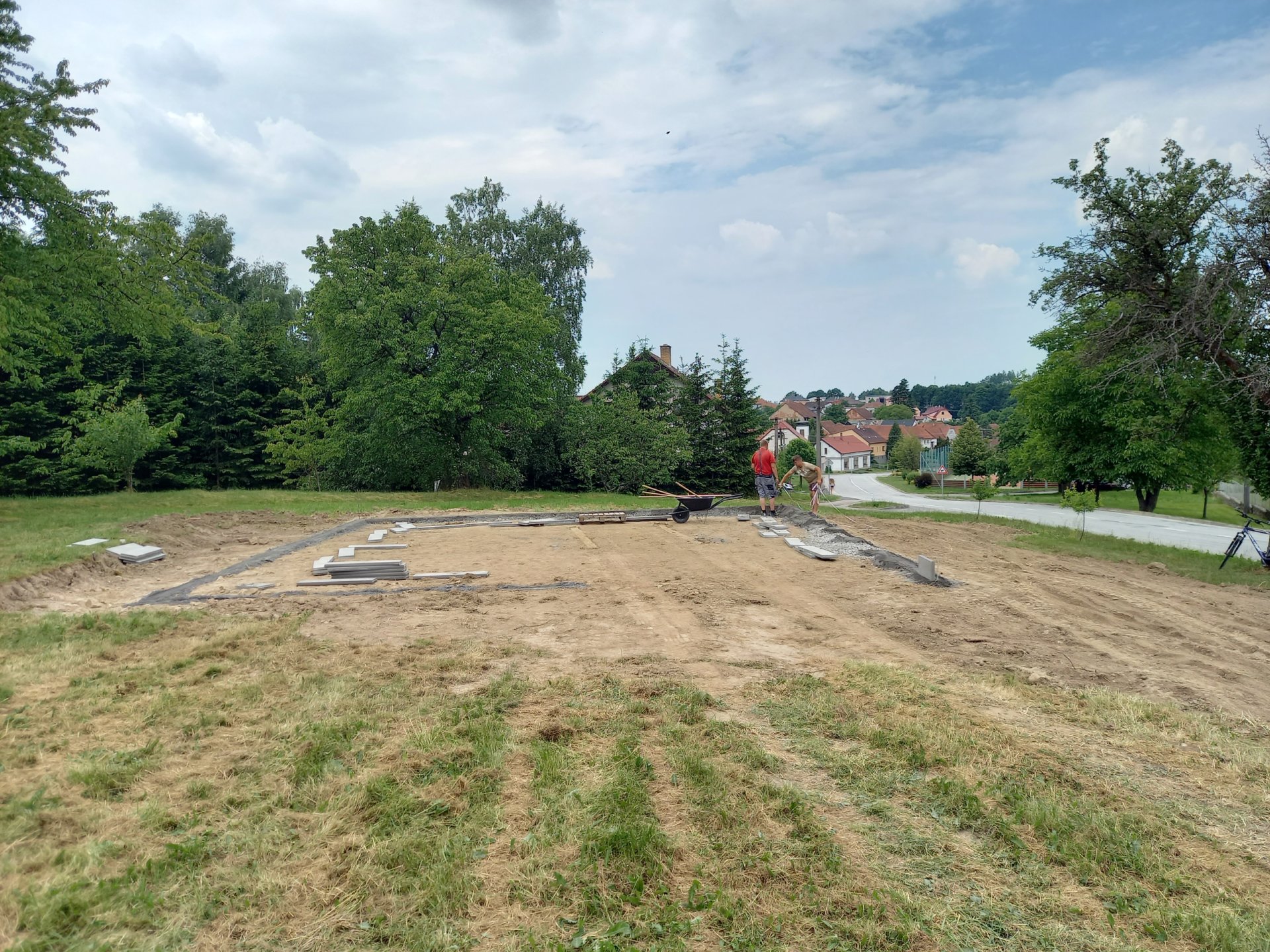 Ve druhé polovině června začal první stavební ruch na pozemku vedle cesty k vlakové zastávce. Projíždějící řidiči, cyklisté i chodci se ptali, co se tam staví? Tento pozemek byl v minulosti prázdný a vlastnila jej Správa železnic, státní organizace. Pozemek se nám po velmi složitém procesu podařilo koupit za výhodnou cenu již v roce 2016 a v roce loňském provést, po dalších jednáních, i výmaz věcného břemene vedení podzemního kabelu, který patřil také Správě železnic. Nyní již nic nebránilo v plnohodnotném využití pozemku. Začalo tedy budování workoutového hřiště HYBRID PLUS. Toto hřiště je variantou velmi oblíbeného hřiště HYBRID, která navíc obsahuje prvky se zvýšenou kritickou výškou pádu. Kromě základních prvků pro cvičení s vlastní váhou, jako jsou hrazdy v různých výškách a variantách, dvojitá bradla, stalky, držáky na kruhy, monkey bar pro ručkování, svislé žebřiny, různé lavice a informační tabuli; na ni najdeme ještě držák na lano, svislou trubku pole dance, šikmý žebřík na ručkování monkey bar wing, a na ploše ještě stupínky step up a lavici se stalky. HYBRID PLUS je vhodný jako hřiště pro obce nad 2000 obyvatel, hodí se do parků, jako vybavení sportovních ploch a míst určených k aktivnímu trávení volného času. Najednou na něm může cvičit až 26 lidí.